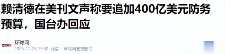 11月,赖清德在《华盛顿邮报》上可谓是意气风发,发表署名文章,高调宣布防务预算再创新高。这400亿美元的特别预算,扬言要打造“不对称作战能力”。清单列得那是满满当当,从F-16战机的升级配套,到各类导弹系统,甚至细致到了维修零部件,仿佛只要美元花出去了,安全感就能买回来。